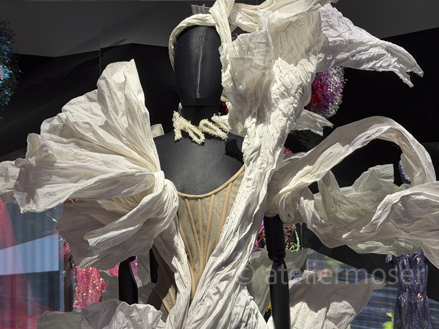 Der 33jährige Schweizer Modedesigner Kévin Germanier vermischt in seinen Kreationen recycelte Materialien, leuchtende Farben und futuristische Formen und demonstriert dadurch, dass Nachhaltigkeit und Eleganz nicht im Widerspruch stehen. Seine Haute Couture ist fröhlich-frech, verspielt und sehr poetisch - zu sehen im mudac in Lausanne noch bis zum 22. März 2026.